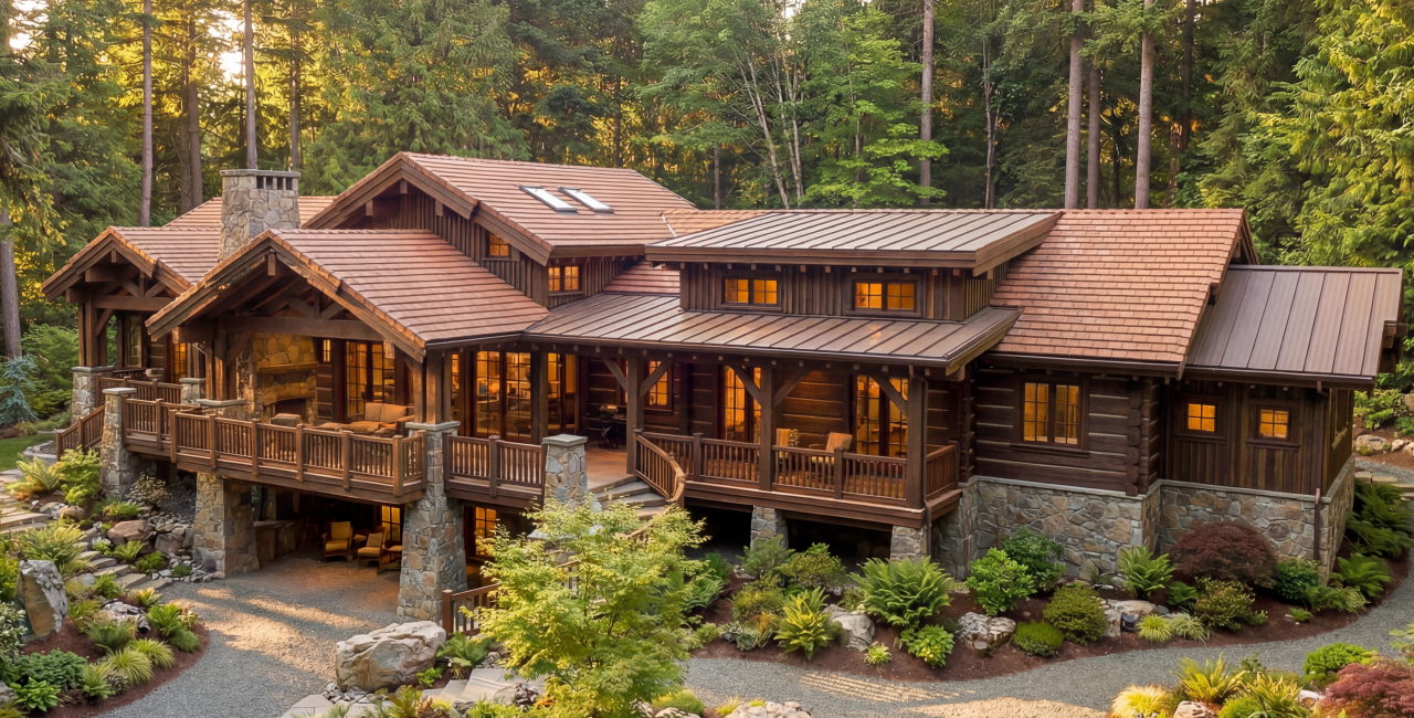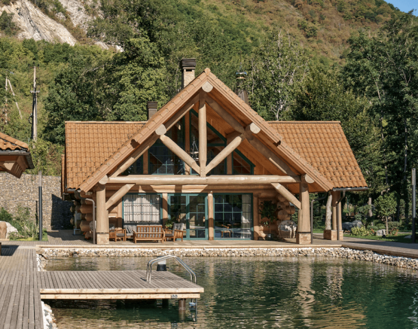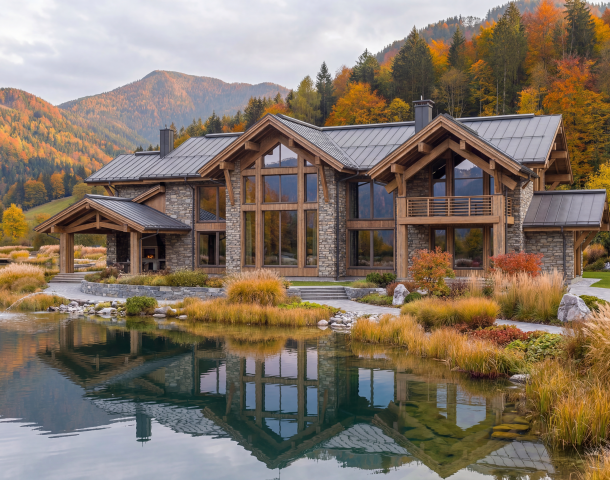 камня в сочетании с деревом